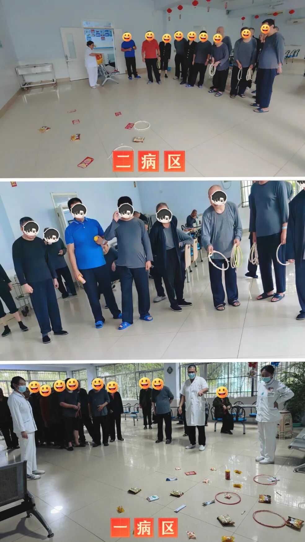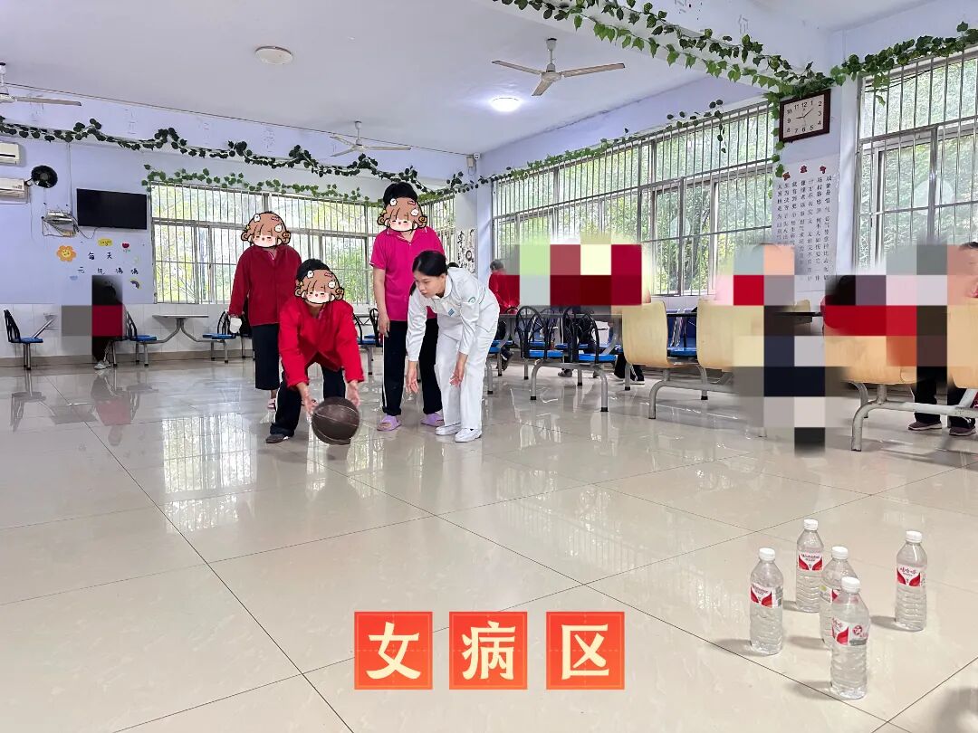 用籃球充當“保齡球”,滾動、撞擊、歡呼…… 每一次成功擊倒目標瓶,都引來陣陣喝彩。這項活動不僅考驗手眼協調能力,更讓大家在運動中釋放壓力、重拾活力,讓病房里的中秋多了份動感與朝氣。