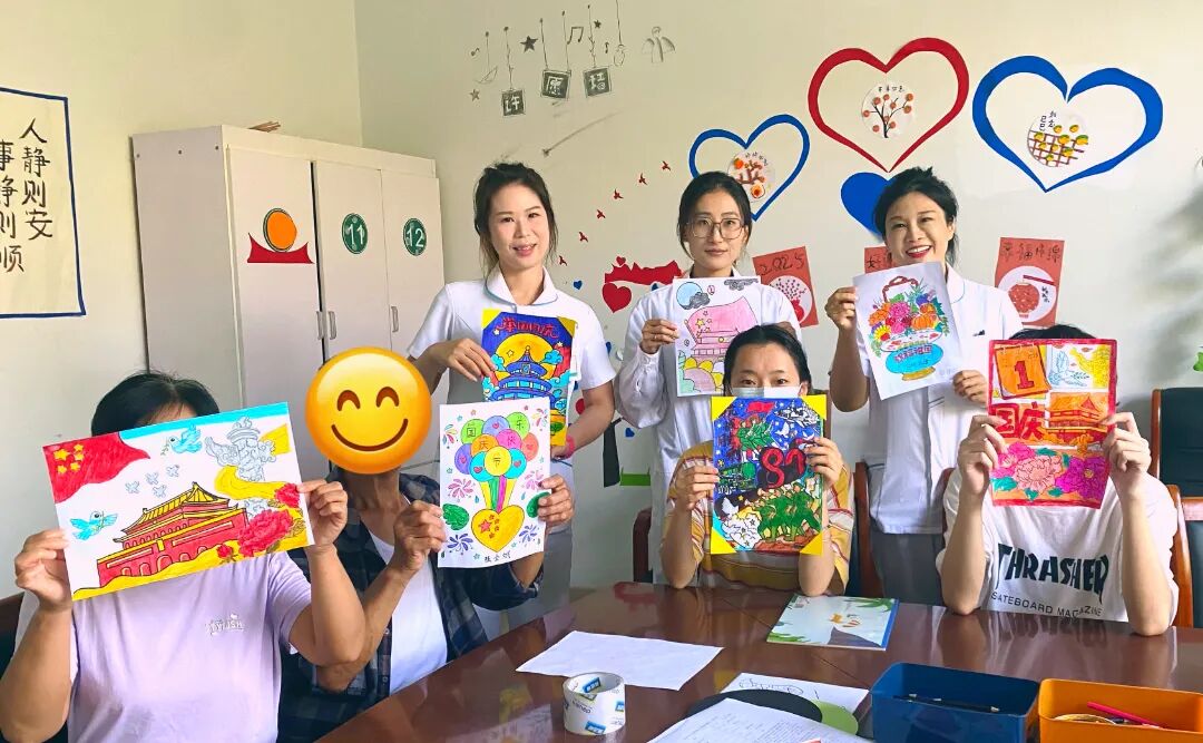 在開放康復病區,一場以“喜迎國慶 愛國情懷”為主題的繪畫活動正溫暖進行。患者在醫護人員的陪伴下,執起五彩畫筆,全神貫注地投入創作。筆尖流轉之間,天安門莊嚴屹立,祈年殿典雅而立,慶典花籃盛放喜悅,閱兵方陣盡顯國威,和平鴿翱翔于天……一幅幅飽含深情的畫作,既描繪出祖國的壯麗畫卷,也寄托著對國家繁榮昌盛的真摯祝愿。活動結束后,大家的畫作被精心張貼在病區走廊,匯成一道動人的“藝術長廊”,讓日常的走廊成為承載祝福、點亮心情的風景線。