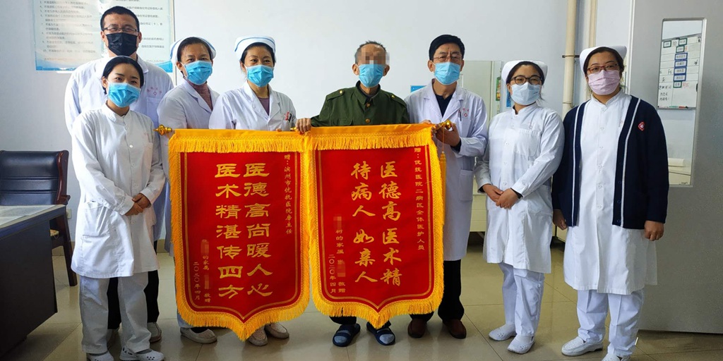 疫情期間,為守護廣大住院患者的安全健康,我院各病區(qū)一直實施封閉管理,但隔離不隔愛,4月23日上午,兩面錦旗經(jīng)過幾次傳送,終于到達了二病區(qū)醫(yī)護人員手中,溫暖、感動瞬間點燃整個病區(qū)。
