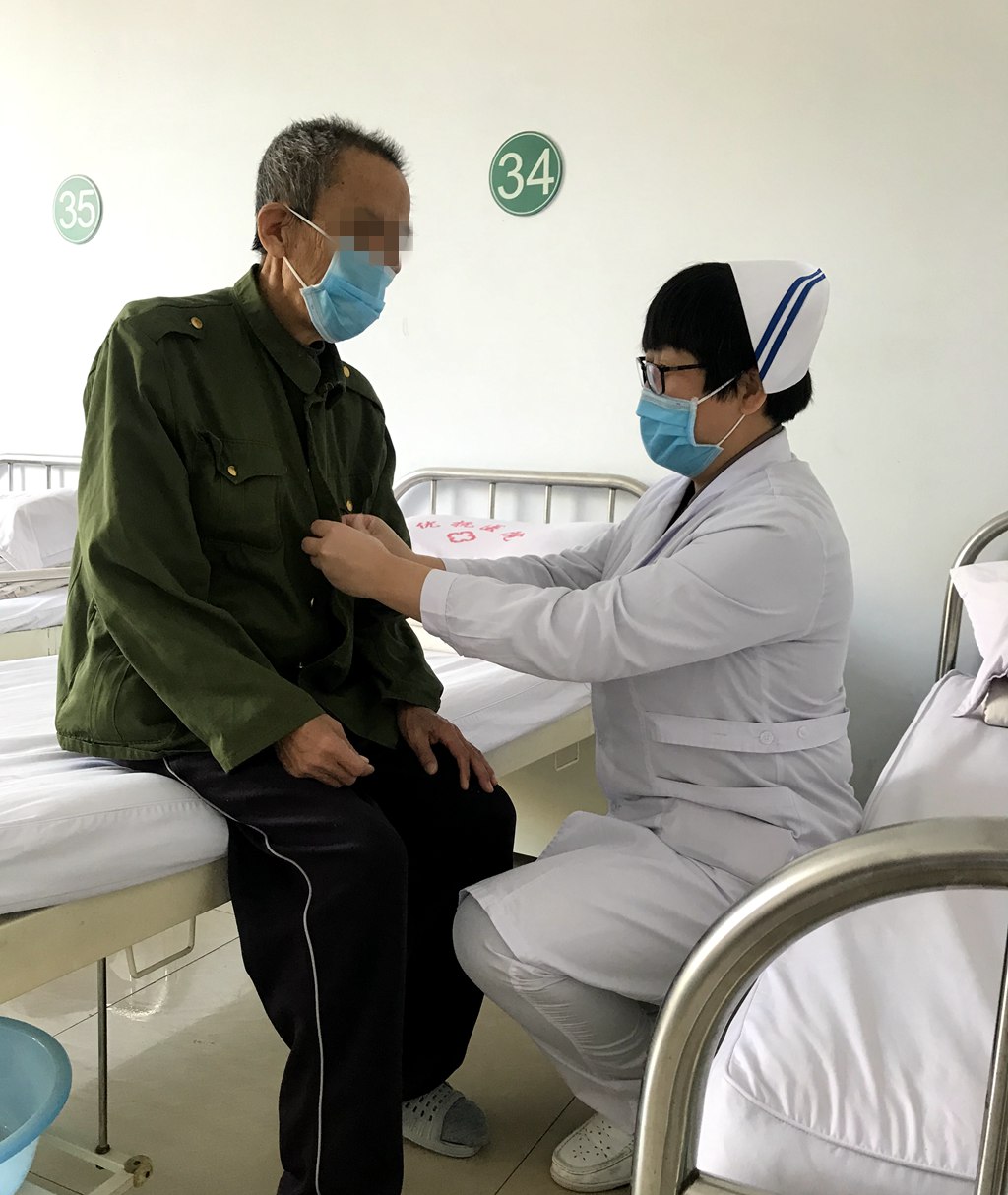 “雖然有時候很累,有時候還要忍受患者發(fā)病時打罵的委屈,但住在院里的退役軍人,他們是為國防建設(shè)做出過貢獻的人,無論何時他們都應(yīng)該得到關(guān)心關(guān)愛,為他們服務(wù)是特殊的使命,我們應(yīng)當竭盡全力。”二病區(qū)護士長丁銀霞眼含淚光地說。