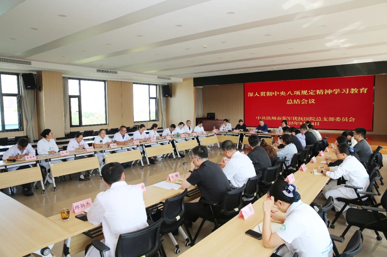 9月24日,濱州市榮軍優撫醫院召開黨總支(擴大)會議暨深入貫徹中央八項規定精神學習教育總結會議。院黨總支書記李學軍主持會議并講話,班子成員、各黨支部書記和副科級及以上干部參加。